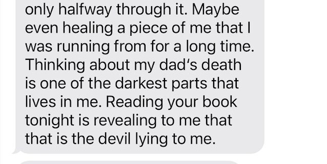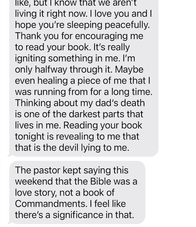 My daughter is reading it and she sent me a ton of messages last night about coming back together with her dad. She discussed his miracle in healing and that the devil is a liar to say he’s stuck like this. I am torn in this all because I know that man broke my heart. I know how much love God instilled in me towards him. I know betrayal hit harder than I could’ve ever imagined and made me not trust love anymore.